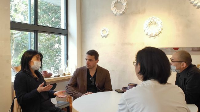 「とても相性がいい。製造元に行ってみたい」というジョアオさんに対して、「この器も多治見のものですよ」などテーブルコーディネートのご提案もいただきました。